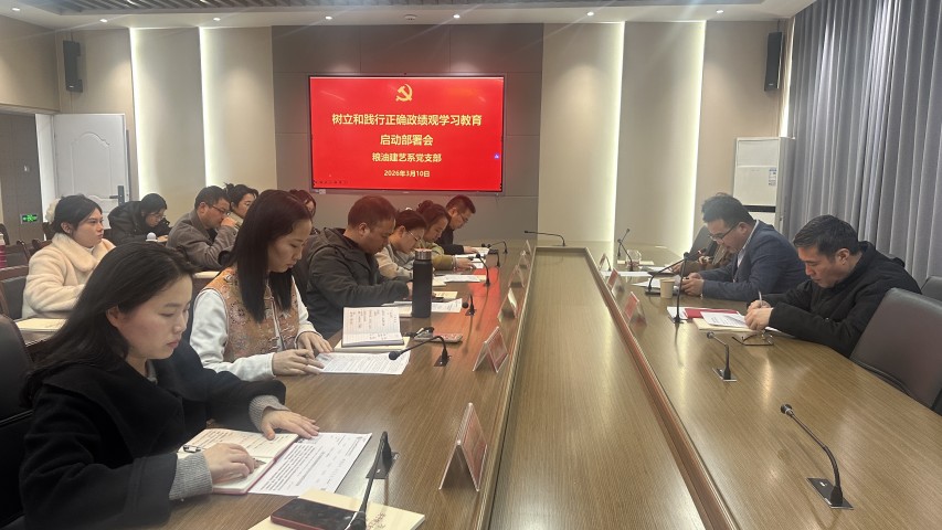 3月10日,粮油建艺系党支部召开支部大会,动员部署树立和践行正确政绩观学习教育工作,全体党员参加会议。
