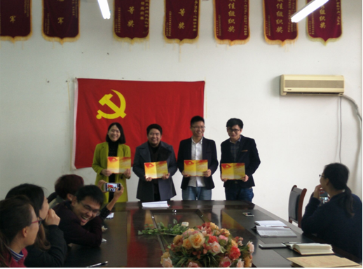 (建艺系 傅艳华报道)“我志愿加入中国共产党,拥护党的纲领,遵守党的章程,履行党员义务……”这是建艺系的党员在过政治生日活动现场发出的铿锵有力的誓言。11月22日下午,建艺系党支部为入党时间在11月份的傅艳华、谢恺、胡远诚、胡洁芳四位党员同志庆祝政治生日。
