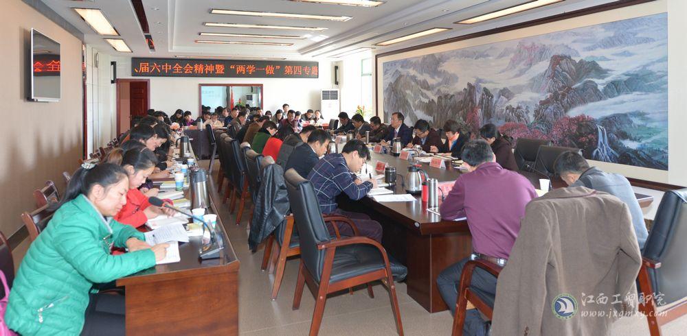 11月28日上午,江西工贸学院“两学一做”学习教育第四专题研讨会在行政楼415会议室召开,学院领导及全体中层干部参加学习会,会议围绕“依靠群众求胜利”主题进行了专题讨论学习。学院党委书记、院长万玉青主持并讲话。
