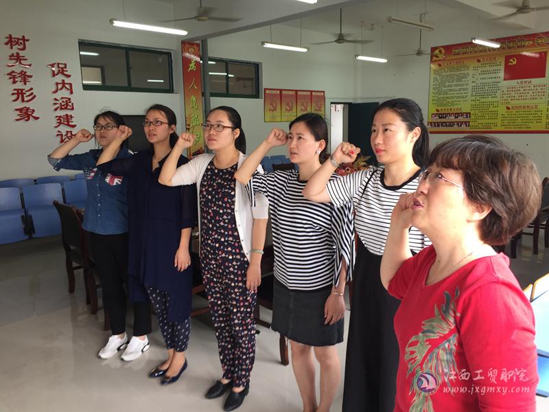 最后,党员老师们在党支部书记胡晖同志的带领下重温了入党誓词。希望每位党员教师不忘政治生日,牢记党员身份,在工作岗位充分发挥党员的先锋模范作用,做好学生思想政治教育工作的引路人。