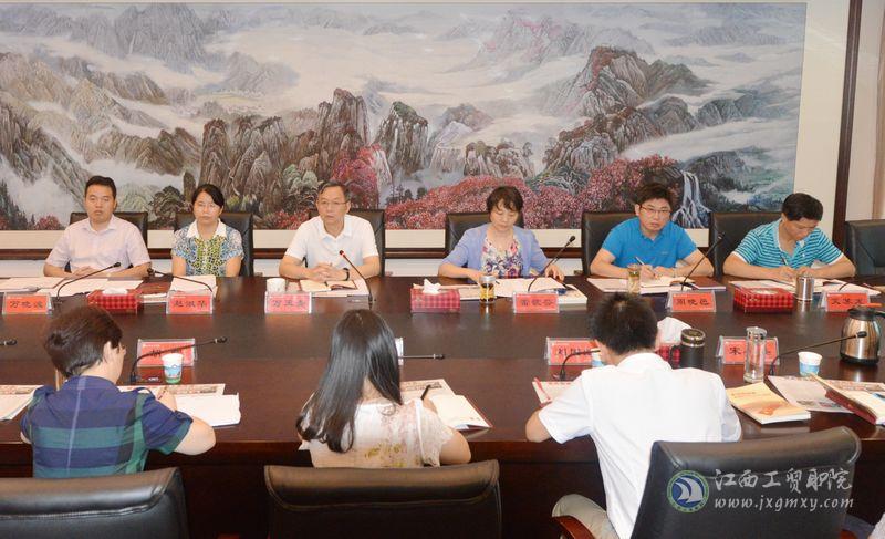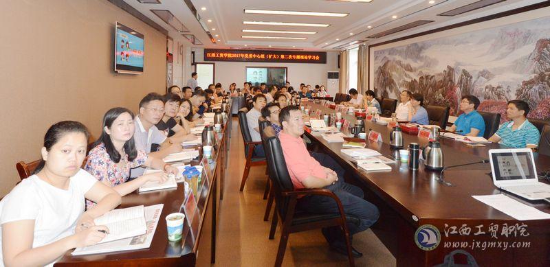 6月29日,江西工业贸易职业技术学院2017年党委中心组(扩大)第二专题理论学习会在行政楼415会议室召开,学院党委书记万玉青主持并作讲话,全体中层以上干部参加会议。