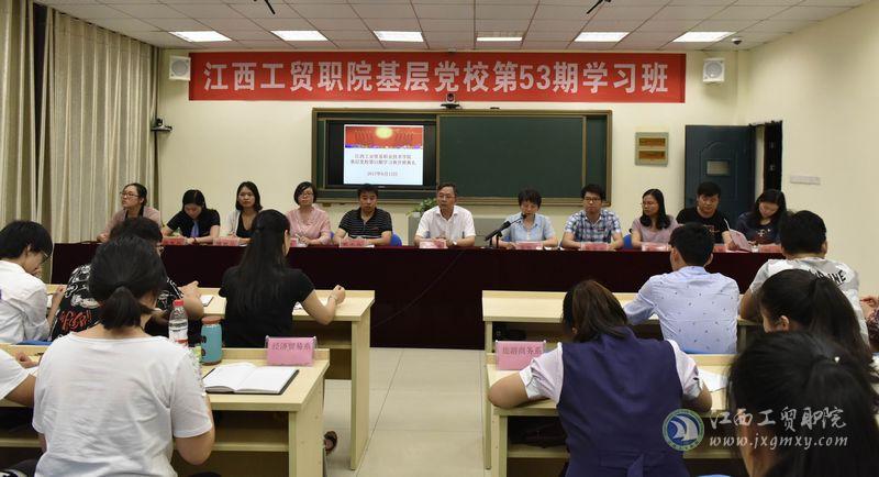 2017年6月13日,江西工业贸易职业技术学院基层党校第53期学习班开班典礼在学院隆重举行,学院党委书记万玉青出席并讲话,党委副书记、院长雷筱芬主持开幕式,党办、学工处、思政部负责人及各系学生党支部书记出席开幕式。
