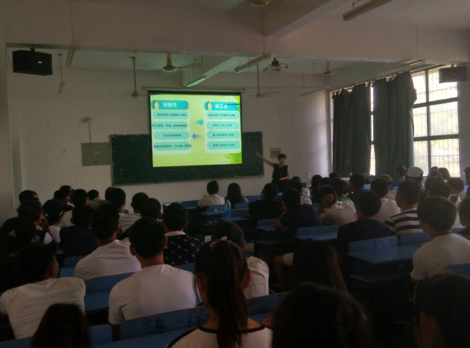 赵思炯老师在第一教学楼206为建筑工程技术的同学们从专业情况、道路桥梁的建设、中国建筑的发展史、专业培养目标、课程设置和就业情况六大方面做了讲解。