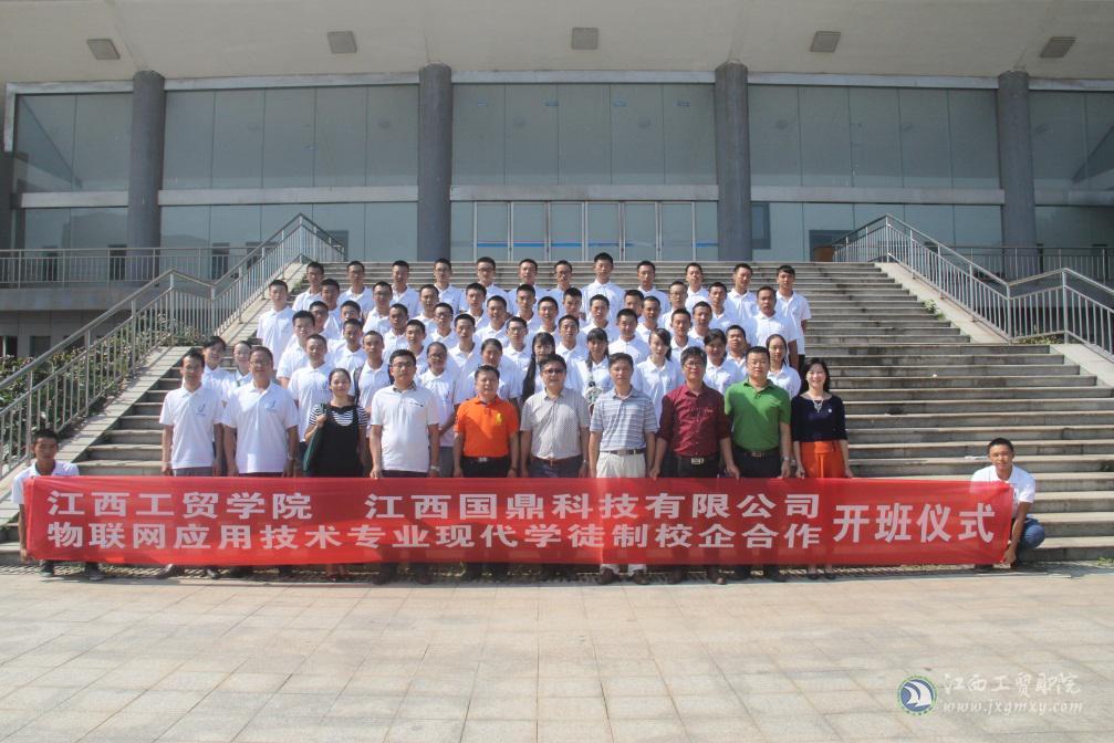 (信息工程系 傅菊春报道)9月19日上午,2016级物联网应用技术专业现代学徒制校企合作开班仪式在我院隆重举行,参加此次开班仪式的校方代表有:学院党委委员、调研员郝育忠,学院党委委员、院长助理艾苏龙,信息工程系领导及相关专业教师;企业方代表有:江西国鼎科技有限公司吴方国总经理,黄军勇副总经理,行政主管朱小红一行三人;2016级物联网应用技术专业全体同学及辅导员参加了开班仪式。开班仪式在第二专业楼110室举行,会议由信息工程系刘长万副主任(主持工作)主持。