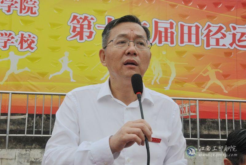 院长助理艾苏龙同志致开幕词。他首先代表组委会对本届运动会顺利开幕表示热烈的祝贺,向全体运动员、裁判员及所有工作人员的辛勤付出表示诚挚问候。他强调,运动是一切生命的本源,它不仅仅是让我们协调、大方、优美、舒适的行为艺术;也不仅仅是带给我们美好、健康、快乐、舒适的生活财富;更是赋予我们勇敢、果断、坚毅、激情的力量源泉。本届田径运动会,既是对学院体育水平的一次集中检验,也是学院素质教育、阳光体育活动的一次展示;既是对学院体育工作、师生精神风貌的一次检阅,也是对学生身体素质、竞技水平、心理承受力等综合素质的考验;更是各参赛班级集体意识、竞争意识、顽强拼搏精神的综合体现。为此,他希望全院师生员工把体育运动当作一种习惯,让身心健康成为一种追求,将全民健身作为一种时尚,积极投身到体育锻炼中去;希望全体运动员、裁判员和工作人员恪守“公开、公平、公正”的竞赛准则,严格遵守运动会各项规程和纪律,发扬勇于拼搏、敢于进取、乐于协作的体育精神,积极投入到运动会比赛的全过程,赛出水平,赛出风格,展现工贸学子的精神风貌和工贸人的道德风尚。