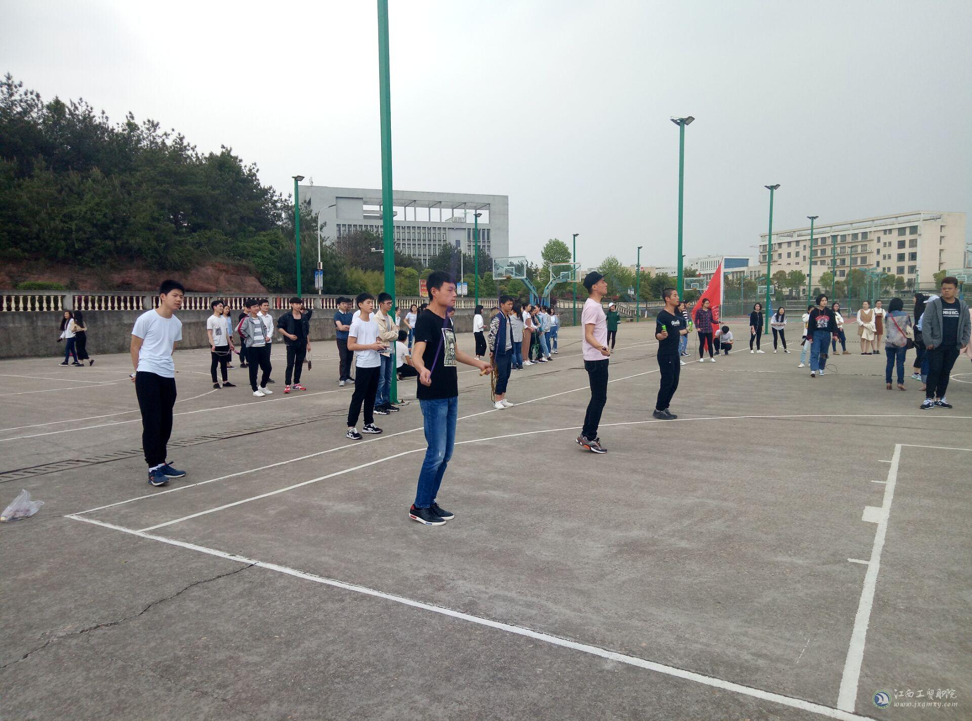 为响应学院“ 走下网络、 走出宿舍、 走向操场”的号召,强健学生体魄、丰富校园生活,旅游商务系团总支学生会于2017年4月6日课外活动时间在学校操场进行集体跳绳比赛。