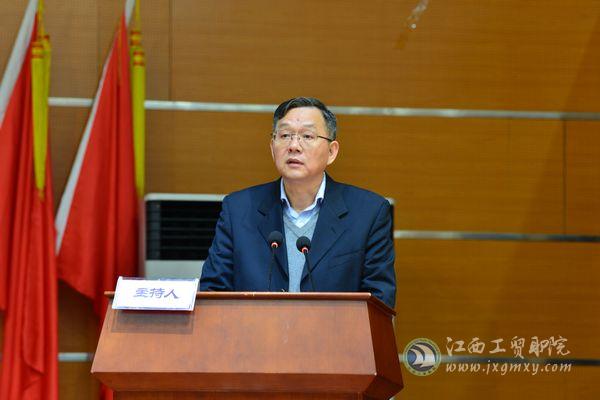 江西工贸职院师生代表450余人现场聆听了报告,报告会由学院党委书记万玉青同志主持。