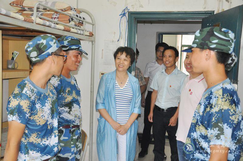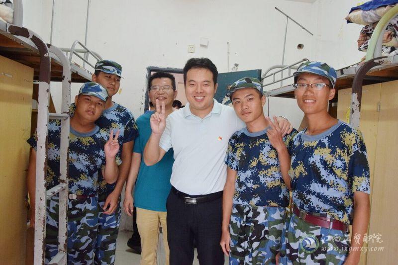 在看望途中,看到正在操场上操练的军训教官,院领导一行上前询问训练情况,万玉青书记对军训教官的辛苦付出给出了高度评价,鼓励同学们继续发扬工贸教官队的优良传统,做好新生军训工作。