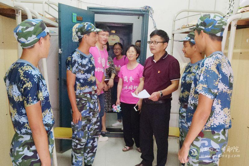 为认真贯彻落实全国、全省高校思想政治工作会议精神,深入推进“两学一做”学习教育常态化制度化和“三联三创”行动,创新组织“思想政治工作体验日”和“学生生活体验日”。9月11日下午,学院党委书记万玉青,院长雷筱芬,调研员郝育忠,副院长赵淑华、周晓邑,院纪委书记万晓波,院长助理艾苏龙等领导带领中层干部,集体深入学生宿舍,看望慰问2017级新生。