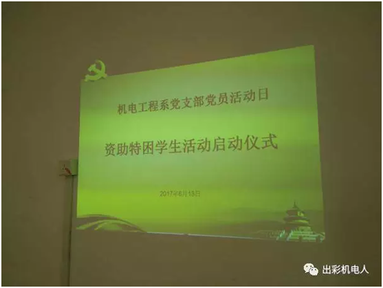 服务社会和师生工 程,为让系部特困学生更好的 在学校学习和生活,机电工程系党支部特于2017年6月13日中午在三专326室开展资助特困学生启动仪式。