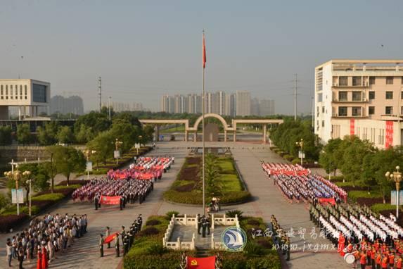 (党委宣传部 聂慧芬报道)为了践行社会主义核心价值观,培养学院师生爱国、爱党的信念,纪念中国共产党建党九十五周年。6月13日早上,学院庆祝“建党95周年”升国旗系列活动在图书馆国旗广场隆重举行,学院在家领导、中层干部、在校居住教工党员及各系(部)学生党员、学生代表共计700余人参加仪式并作宣誓。