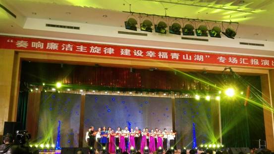 (学工处・团委・武装部 谢林溪报道)12月30日晚7时,学院大学生艺术团16名同学受邀参加了青山湖区政府举办的“奏响廉洁主旋律 建设幸福青山湖”专场汇报演出,与江西省文联的两名主持人一同表演了配乐朗诵《反腐倡廉赞歌》,演出效果较好,赢得了一致好评。通过参加此次活动不仅让同学们得到了锻炼的机会,还接受了反腐倡廉的教育,增强反腐意识。