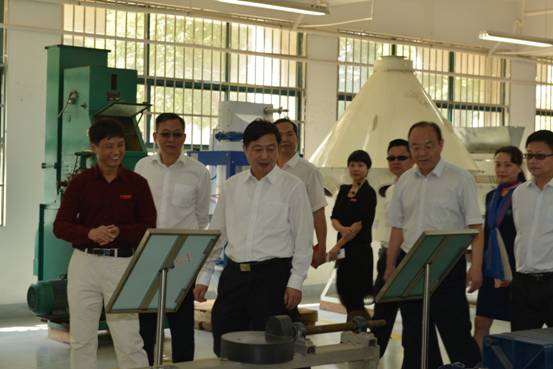 本网讯 10月16日上午,省粮食局党组书记、局长黄河来我院视察工作,在学院全体院领导的陪同下,黄局长参观了校园、专业实训中心。每到一处,黄局长都与在场的师生亲切交流,详细了解学院人才培养水平工作和发展中存在的问题,对学院下一步努力方向给予了指导。