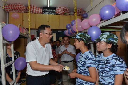下午3点左右,学院领导万院长带领着赵副院长、宋主任和李处长亲临学生宿舍亲切看望慰问经贸系新生。万院长一行受同学们的邀参加了3名同学的生日派对,在空间有限的宿舍里,流淌着欢快的歌声,院长和同学们一起为寿星拍手唱歌,还亲自为小寿星切蛋糕,一起品尝水果。万院长亲切的与同学们交谈,并关心同学们进校后的生活,同学们看着眼前这些如亲人般的院领导,眼框里饱含着泪水。