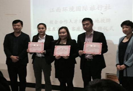 活动第一部分,江西工贸学院旅游商务系系主任潘燕为江西环境国旅授予“校企合作人才培养基地”。接下来潘主任为邹志鹏总经理授予旅游商务系客座教授称号,授予周晶晶、杨剑、林晓芳旅游商务系客座讲师称号。