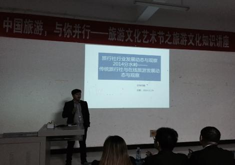 第二部分,邹志鹏总经理为全体同学带来名为《中国旅游,与你并行》的讲座,讲座过程中,邹总结合江西旅游市场出游特点,中国出境旅游发展趋势以及旅游职业人基本素质等方面与同学们进行了分享。同学们参与热情极高,互动氛围良好,讲座取得了良好的效果。