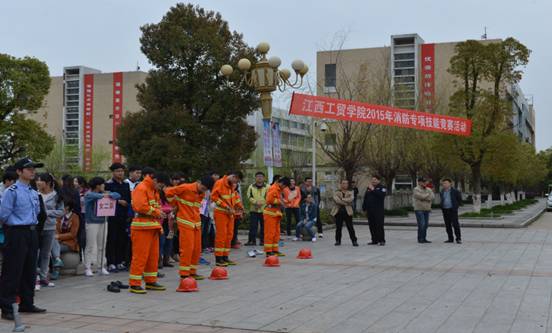 随后,在保卫处负责人宣读竞赛规则、评分标准后,拉开了消防技能比武的序幕。