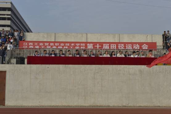 (宣传部 报道)2013年10月16日上午,江西工业贸易职业技术学院第十届田径运动会隆重开幕,学院党委书记谢芳桂、副院长肖一敏、郝育忠、雷筱芬、工会主席赵忠平、调研员舒惠群、院长助理温莉以及有关部门负责同志出席开幕式。