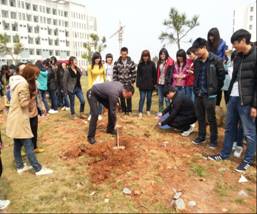 (经济贸易系 肖婉宜报道)一年之计在于春,春天是播种的季节。在第三十五个植树节来临之际,为提高学生们保护自然、爱护环境的意识,学院开展了一年一度的植树绿化活动,经济贸易系积极响应学院号召,参加了此次植树活动。