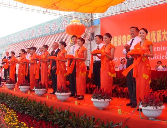 (旅游商务系 韩莹报道)2010年9月19日,江西省新干县城南工业园的江粮集团金佳公司广场花团锦簇、鼓乐齐鸣,隆重举行金佳谷物年产18万吨优质大米及其副产品综合利用暨100%稻壳燃料热电联产项目竣工庆典。根据粮食局领导的安排,旅游商务系尚雅礼仪队20名礼仪队员在