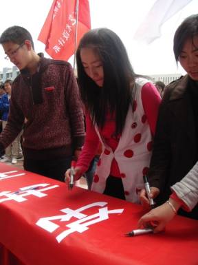 随后,举行了读书签名及各系捐书活动,老师们都在“走进图书馆,好书伴我行”图书漂流活动的横幅上签名。接着,各系学生代表也踊跃的参加签名活动环节。相信读书节给大家带来欢乐和知识,能不断促进和带动全校师生多读书、读好书,真正营造一个健康快乐的读书环境,使大家养成良好的阅读习惯,提高欣赏能力和综合素质。