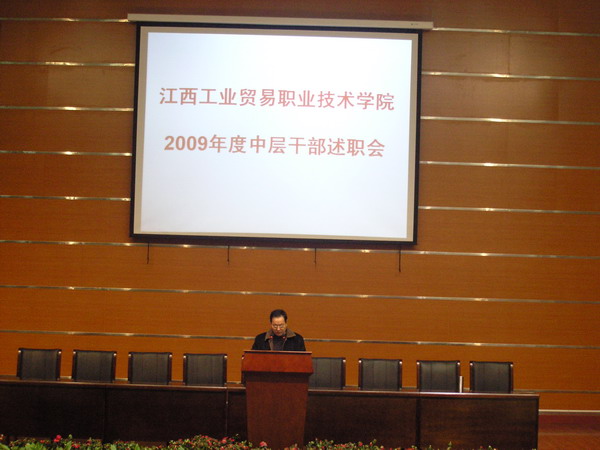 述职会上,谢书记作了讲话。他指出,中层领导干部上接单位领导,下接群众,是承上启下的中坚力量,是一个单位党凝聚群众力量的核心,是领导班子的决策得以推进和落实的重要环节和有力保证,是干事创业的主力军。召开中层干部述职大会,各位干部把一年来的工作晒一晒,亮一亮,看看取得哪些成绩,还有哪些不足,自觉接受领导和群众评议,这是加强干部岗位责任意识的有效手段,是促进学院干部队伍提高的重要举措。他强调,全体中层干部要从德、能、勤、绩、廉五个方面重点汇报2009年度工作履职情况和工作中存在的问题和不足,2010年的工作设想和打算放到年初党委扩大会上再讲。