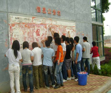 尽管天空下着小雨,却挡不住基层党校学员们参加实践活动的热情。校园公告栏、宣传栏处,基层党校(2)班的学员们正认真的清理校园的广告。校园篮球场上,正上演着一场精彩的篮球比赛,他们是来自第37期基层党校的学员,啦啦队也打着伞为他们加油助威。比赛结束后,党校班主任为他们颁发了纪念品。