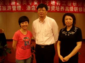 (潘燕、曾聪与教育部高职高专旅游管理类专业教育指导委员会主任郑向敏合影)