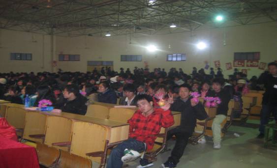 (学工处心理中心高英、伍松报道)在圣诞、元旦来临之际,为扩大心理协会在学生中的影响,融洽与兄弟院校的友谊,树立我院心理协会的形象,学院心理协会于2009年12月23日晚7:00在大学生活动中心举办了“庆圣诞、迎元旦”文艺晚会。此次晚会邀请到学工处处长宋小兵、副处长文莹、各系团总支书记及其他老师观看,南昌大学、南昌大学医学院、南昌航空大学、江西科技师范学院、江西经济干部管理学院、江西赣江职业技术学院心理健康协会也应邀参加了晚会,参加晚会的还有各系心理健康部成员、08、09级所有班级心理健康委员、学生会干部及其他社团成员(共360余人),晚会得到了校园模拟超市、红战野大本营的赞助。
