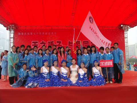 我院40余名院学生会干部在团委王星书记的带领下,来到八一广场,参加了此次活动。在活动过程中,包括学院在内的十所高校被授予无偿献血宣传小分队称号,并接受领导授旗。学院舞蹈队也在稍后的文艺汇演中表演了歌舞《鄱湖鸟》,他们用歌声和舞蹈来表达自己对公益活动的热爱。省政府副省长谢茹、省卫生厅厅长李利出席了本次活动。