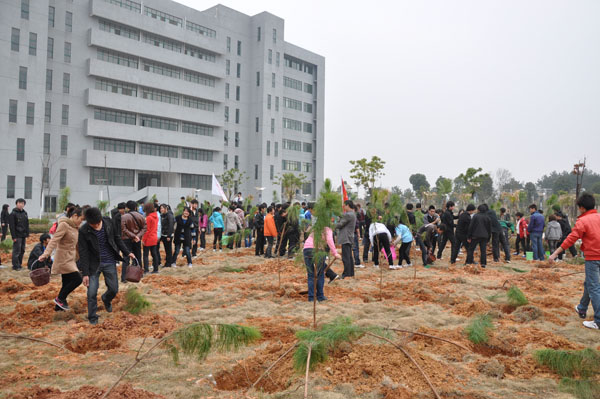 (总务处 章勇辉报道)3月9日,总务处会同学工处・团委组织全院开展义务植树活动。全院各系师生积极参与植树、护树活动。