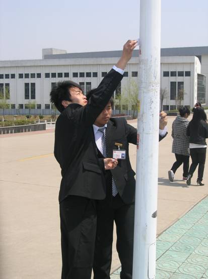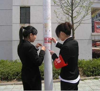 (基层党校宣传队 曾登报道) 3月29日中午学院基层党校宣传队全体成员统一着装、佩戴整齐,以全新的面貌,发扬不怕苦不怕累、干实事精神,清理校园过期公告、不文明乱张贴、乱挂,全院每个角落都留下他们的文明服务的身影,为全院师生提供了一个良好的学习、生活、工作环境。