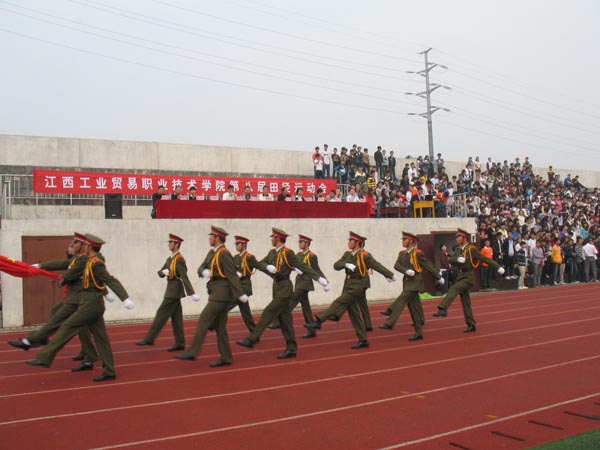 (宣传部 报道)2011年10月13日上午,江西工业贸易职业技术学院第八届田径运动会隆重开幕,学院党委书记谢芳桂、副院长肖一敏、彭锐、雷筱芬、工会主席赵忠平、调研员舒惠群以及各系部负责人出席开幕式。