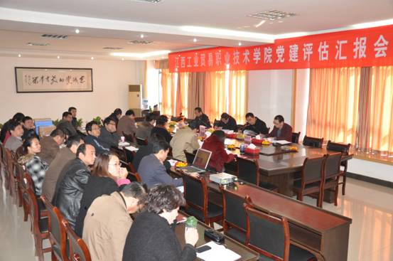 评估汇报会在学院行政楼415会议室举行,学院党委书记谢芳桂、副院长郝育忠、雷筱芬、工会主席赵忠平、院长助理温莉以及各部门负责人、各党支部书记参加评估汇报会。