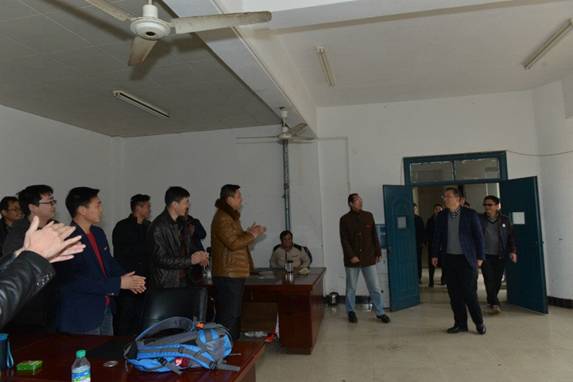 (院办 报道)2月27日,新学期开学第一天,学院党委书记、院长万玉青携调研员肖一敏、郝育忠、副院长彭锐、雷筱芬、赖祖龙、赵淑华、周晓邑及院长助理艾苏龙在学院办公室、教务处等相关部门负责同志的陪同下深入各办公场所,检查新学期各项工作的准备情况、教师到岗情况,了解各部门开学初遇到的新情况新问题,亲切走访到岗教职工,并向他们送上诚挚的祝福。
