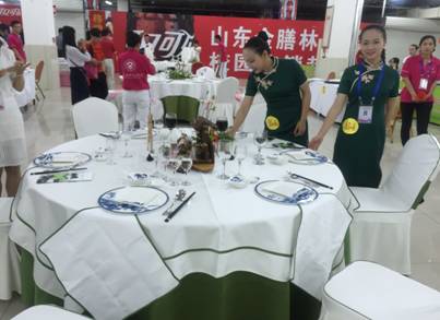 中餐主题宴会设计比赛分为接待方案设计,现场操作(中餐宴会摆台、席间服务),英语口语等三个部分,考验选手的综合素质能力。学院历来重视学生竞赛,旅游商务系专门成立竞赛筹备小组,组织专业教师对主题进行研讨,制定完善的学生集训计划。