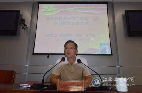 按照学院“两学一做”学习教育实施方案的安排,2016年9月27日下午,学院党委书记、院长万玉青同志到思政公教党支部以《认真学习党史 进一步明确党员职责 为建设优质高职学院而努力奋斗》为题给思政部、公共课教学部全体党员、职工上了一堂专题党课。