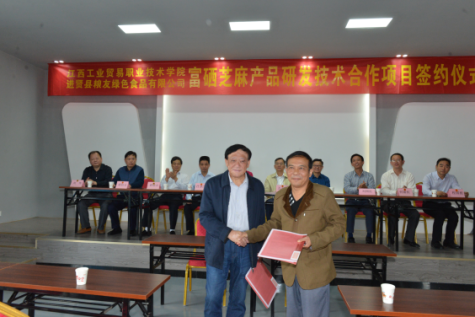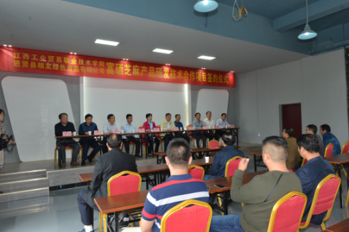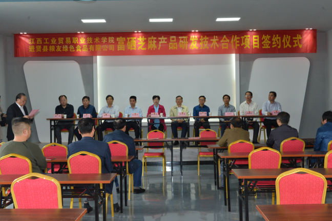 (粮食工程系 胡洁芳报道)10月15日上午,学院与进贤县粮友绿色食品有限公司关于富硒芝麻产品技术合作项目签约仪式在粮友公司的会议厅隆重举行。学院党委书记、院长万玉青、副院长彭锐、院办主任刘国红、粮食工程系主任何隆权、副主任涂宇胜、粮油科技服务工作室负责人淦菁、工作室成员董跃平、胡洁芳、进贤县人民政府副县长涂莉花、农工部部长汪水生、农委主任程国根、科技局局长胡伯玉、农业局局长舒结云、供销合作社联合社主任刘伟、进贤县粮友绿色食品有限公司董事长邹永水、总经理邹永林及各部门负责人出席了签约仪式,农委主任程国根主持签约仪式。
