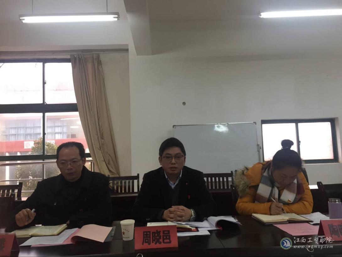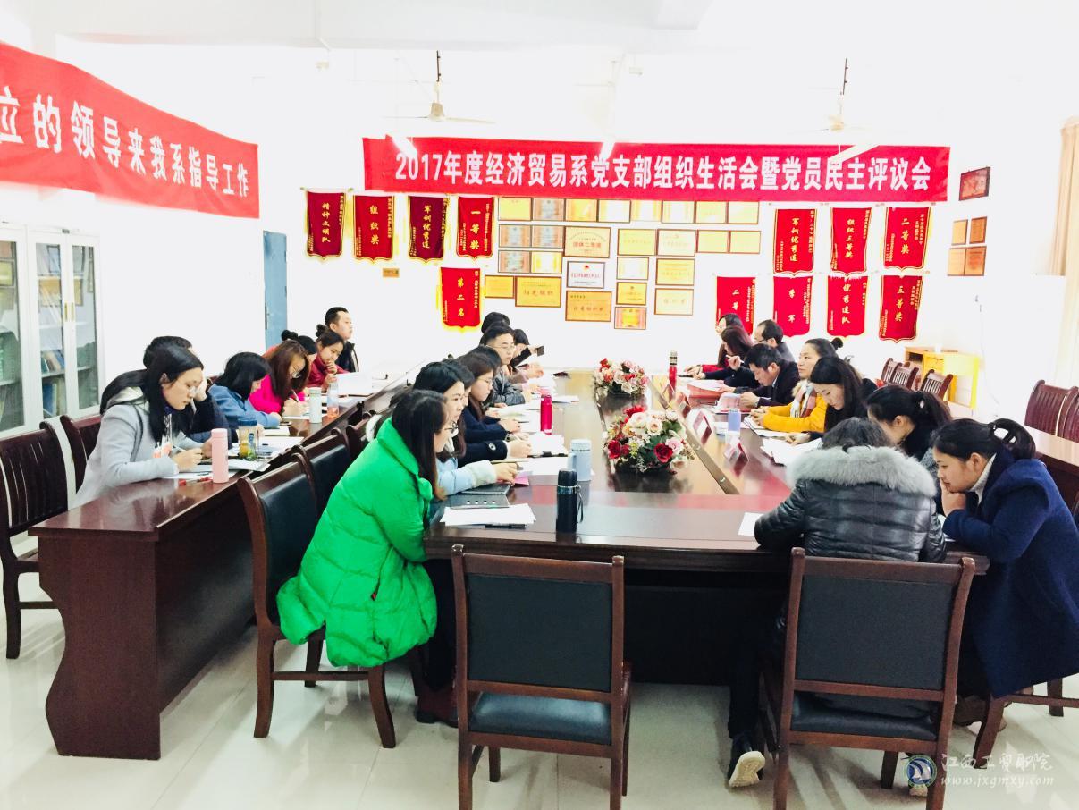 2018年3月20日下午,经济贸易系党支部2017年度组织生活会和党员民主评议会在芳泽楼320室召开。学院党委委员、副院长周晓邑同志出席指导,会议由系党支部书记李运楼同志主持,系支部23名党员参加了会议。