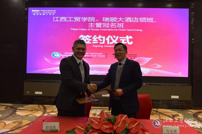 为推进校企联合培养创新型、实践型人才办学模式,本着互相协作、互相支持的原则,为酒店管理专业学生搭建更好的实习锻炼平台,12月26日下午江西工贸职院与南昌瑞颐大酒店校企合作冠名班签约仪式在南昌瑞颐大酒店隆重举行。