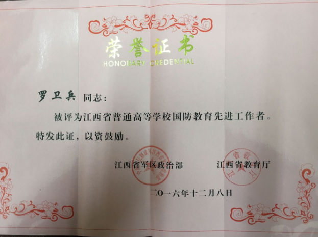 会议对获得江西省普通高校国防教育先进单位、先进工作者、优秀军事教师进行了表彰。全省共有十五所高校获评先进单位,我院是获得先进单位的唯一一所高职学院。