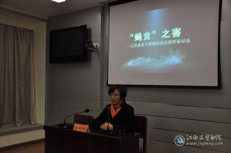 为进一步加强全院党员干部廉政警示教育,根据省纪委和省局的通知要求,2017年1月5日下午2点20分,江西工贸职院在行政楼411视频会议室组织集中观看《"蝇贪"之害》警示教育片。在家院领导万玉青、彭锐、雷筱芬、赵淑华、周晓邑、艾苏龙及全院中层以上干部参加