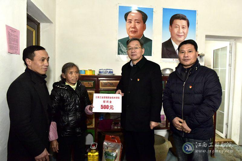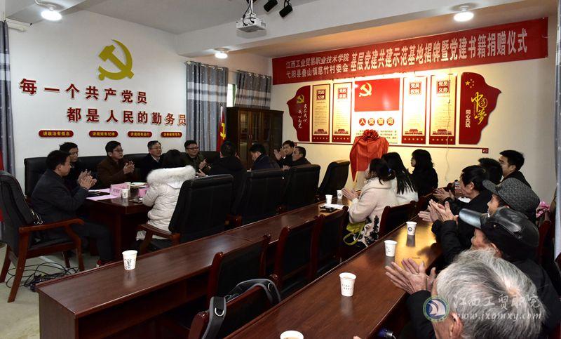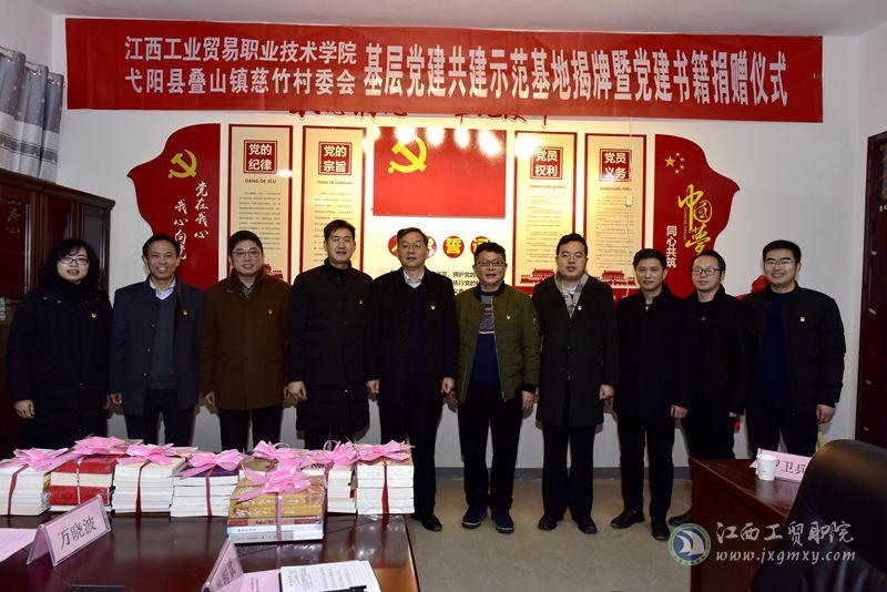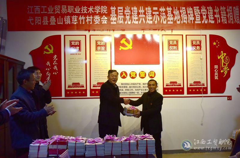1月15日上午,江西工贸职院党委书记万玉青、调研员郝育忠、副院长周晓邑、纪委书记万晓波、院长助理艾苏龙以及相关部门负责同志赴学院定点帮扶村弋阳县叠山镇慈竹村,开展基层党建共建示范基地揭牌、党建书籍捐赠、精准扶贫座谈、扶贫产业考察、走访慰问等活动,镇村两级干部、驻村干部、部分老党员参加了活动。