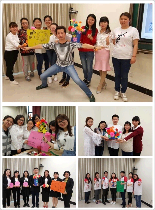 徐琳老师采用一体化的教学方法,通过瞧一瞧、试一试、比一比、说一说的教学手段,提升了老师对责任的全面认知,激发其担当意识。特别是通过以小组为单位制作具有系部特色的手工鲜花实践教学活动,当一朵朵经过精心剪裁、爱心制作的精美手工鲜花呈现在眼前时,使得满教室的春色与窗外百花争艳媲美,相辉相映,春色融融,同时,也让各位老师深刻感受到因责任而激发自我潜能的喜悦感、成就感。