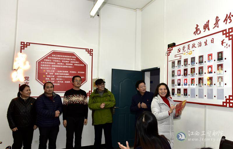 2019年1月7日下午,江西工贸职院机电工程系“光明党支部”揭牌仪式在厚泽楼成功举行。学院党委书记万玉青,党委副书记、院长雷筱芬出席并为“光明党支部”揭牌,学院党委委员、副院长赵淑华,党委办公室副主任王苏,团委书记王星,党委办公室方珊珊,以及光明党支部师生党员代表参加仪式。