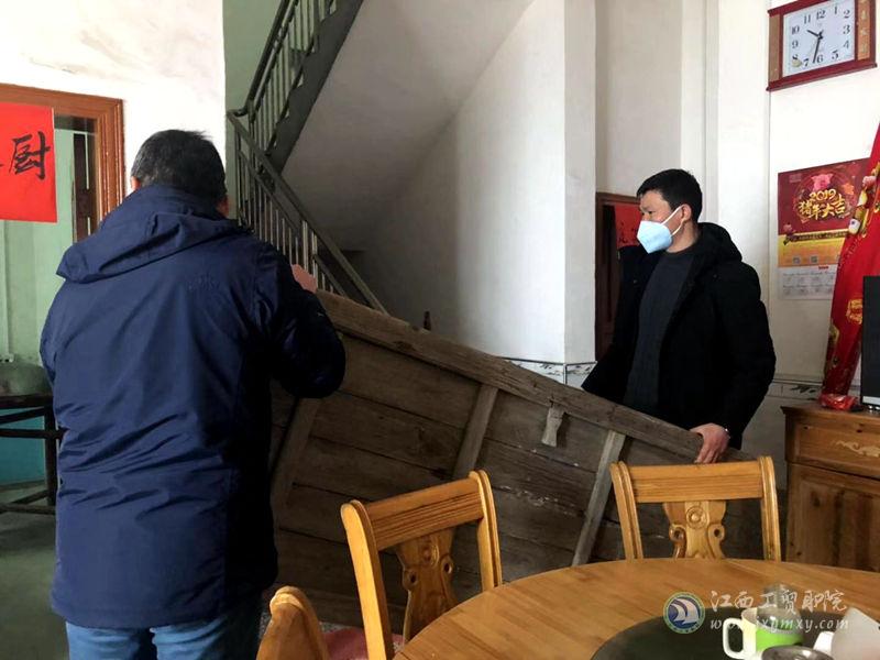 工作队深入省局精准扶贫对口帮扶点——上犹县梅水乡竹山村,与梅水乡党委政府、村两委、驻村工作队有关负责同志进行座谈,走进全村贫困户家中开展走访调研,既向村民面对面送上新春祝福,也借此了解省局精准扶贫对口帮扶工作成效。在走访调研中,还与困难村民共同劳动,帮助打扫家庭环境卫生,共同做好“五净一规范”。上犹县副县长张文林到村看望工作队。