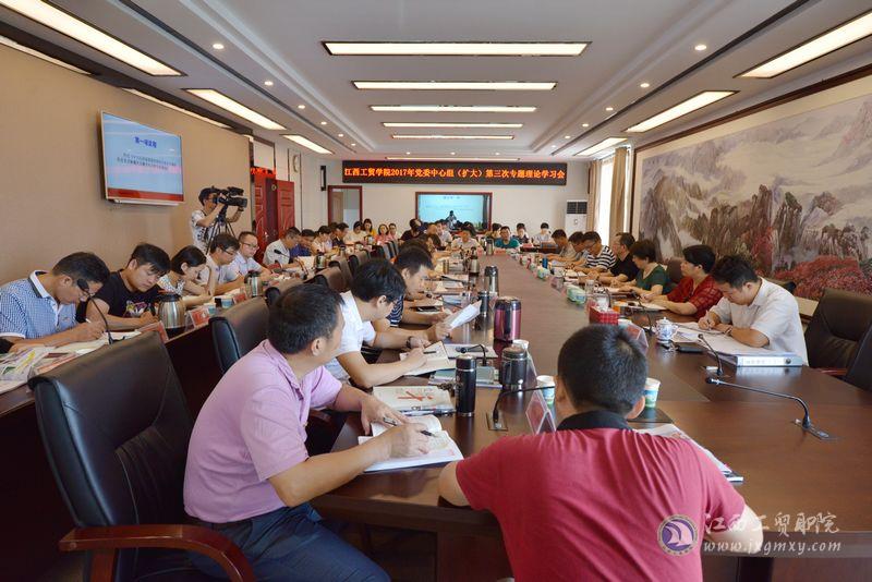 8月31日上午,江西工贸职院“两学一做”学习教育常态化制度化第二专题暨2017年党委中心组(扩大)第三次专题理论学习会在行政楼415会议室召开,学院党委书记万玉青同志主持并作讲话,全体中层以上干部参加了会议。