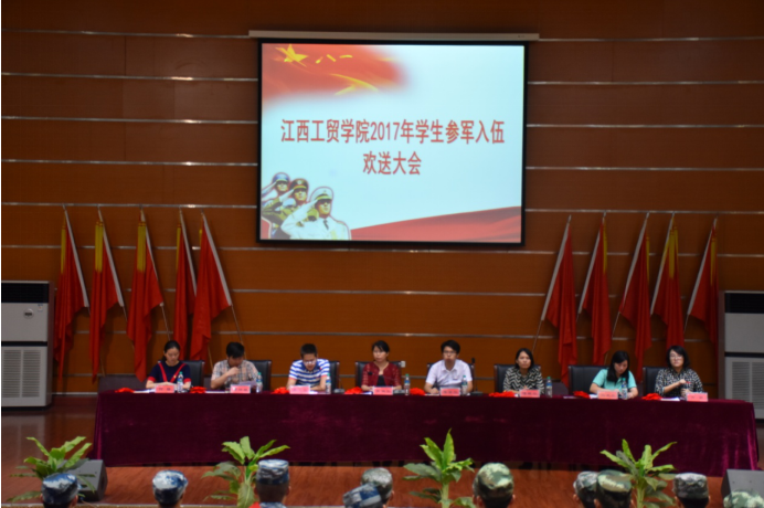 9月11日下午4时,江西工贸学院2017年学生参军入伍欢送大会在图文中心三楼学术报告厅举行。学院党委委员、副院长赵淑华,武装部长李尊华、各系分管学生工作副主任出席了欢送大会。会议由武装部副部长罗卫兵主持。
