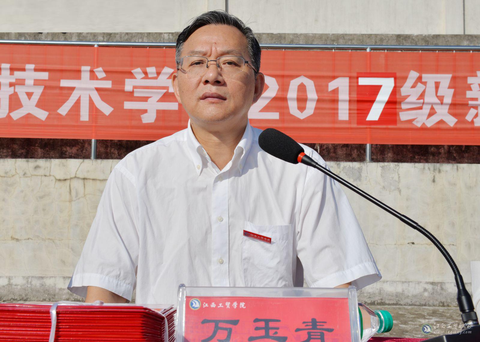 党委书记万玉青作了热情洋溢的讲话,他向承训的教官表示感谢,向在军训中表现突出,成果显著,受到表彰的各先进集体和优秀个人表示热烈的祝贺。同时,对同学们提出了三点希望,一是希望同学们继续把军训中练就的“流血流汗不流泪,掉皮掉肉不掉队”的优良作风贯穿到今后的学习和生活中;二是希望同学们珍惜大学时代的美好时光,努力提高学习能力;三是希望同学们加强思想道德修养,争做品学兼优、具有工匠精神的社会栋梁之才。