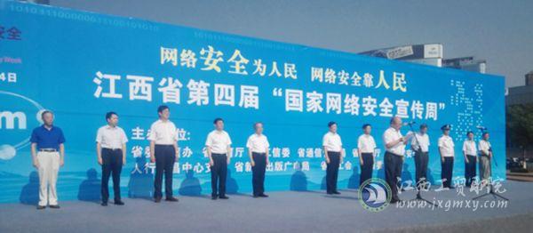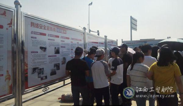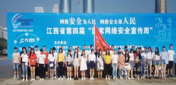 江西省第四届“国家网络安全宣传周”于9月18日上午在南昌市红谷滩崛起广场启动。活动由江西省网信办、省教育厅、省工信委、省通信管理局、省公安厅、省国家安全厅、人行南昌中心支行、省新闻出版广电局、省总工会、团省委共同主办。江西工业贸易职业技术学院师生40余人参加启动仪式。
